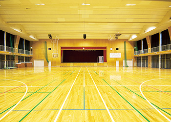 バスケットコートが2面とれる広いフロア。